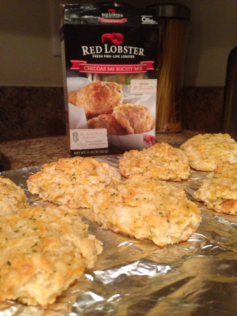 A must buy !!!!! These came out just like the restaurant !!! The box comes with biscuit mix and garlic and herb seasoning. All you need is cheddar cheese, water, and butter. It was quick and easy!!! The biscuit mix is mixed with the cheddar cheese and water until it forms into dough. You make about 8 mini balls and place on baking sheet or foil like I did. Bake at 425 for 15 minutes. While it’s baking you mix the seasoning from the box in melted butter and this is poured over the biscuits when they get out of the oven.