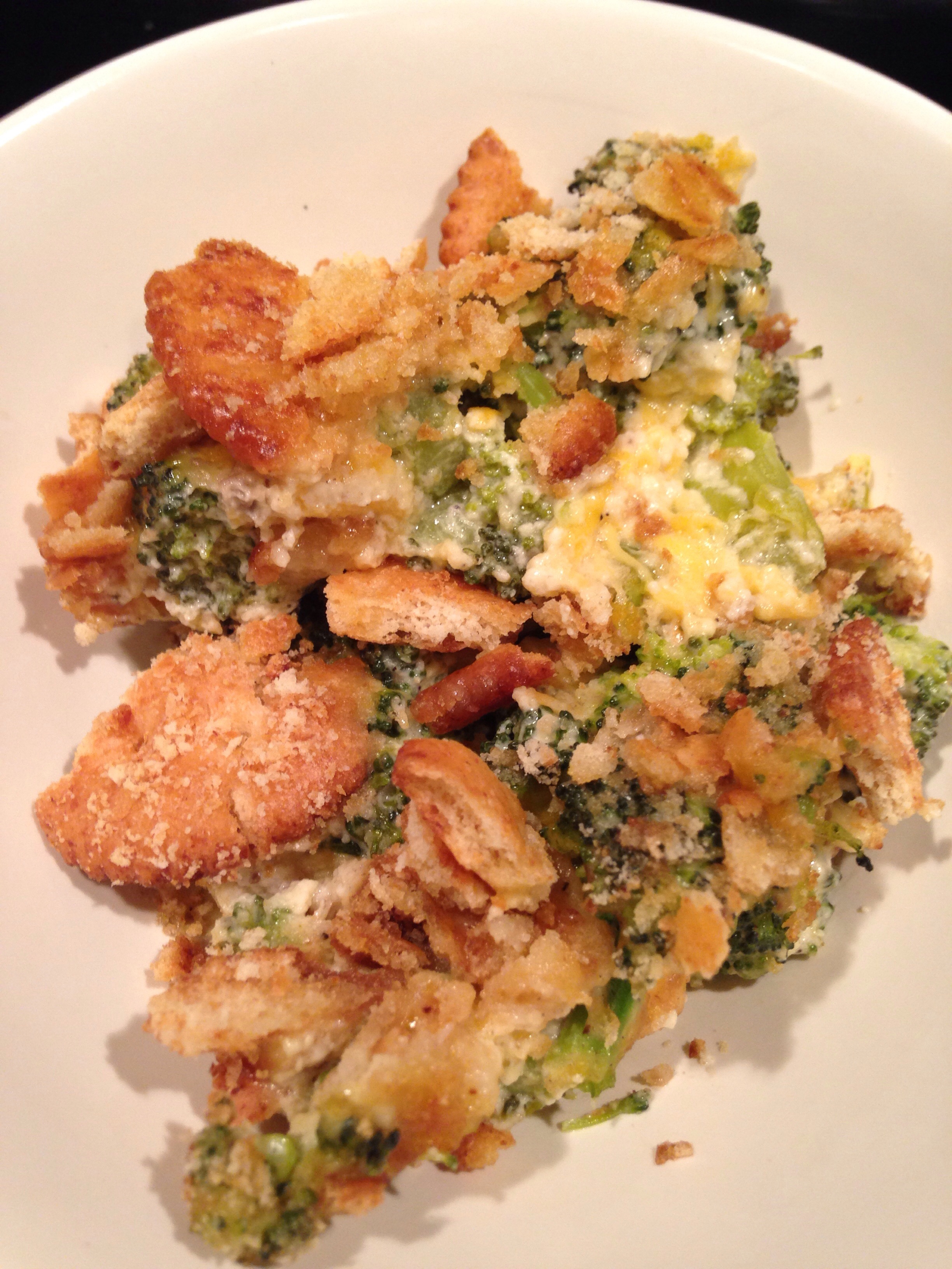 2. In a large mixing bowl, combine broccoli, mayonnaise, cheese, soup and eggs. Mix well with a metal spoon. Place the mixture in the prepared baking dish. Top with the crushed crackers and pour the melted butter evenly over the crackers. Bake for 35 minutes or until set and browned.