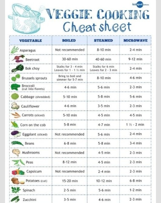 It’s important not to overcook your veggies because you can pretty much take all of the nutrients from the veggie itself. Use this cheat sheet I found on Pinterest!