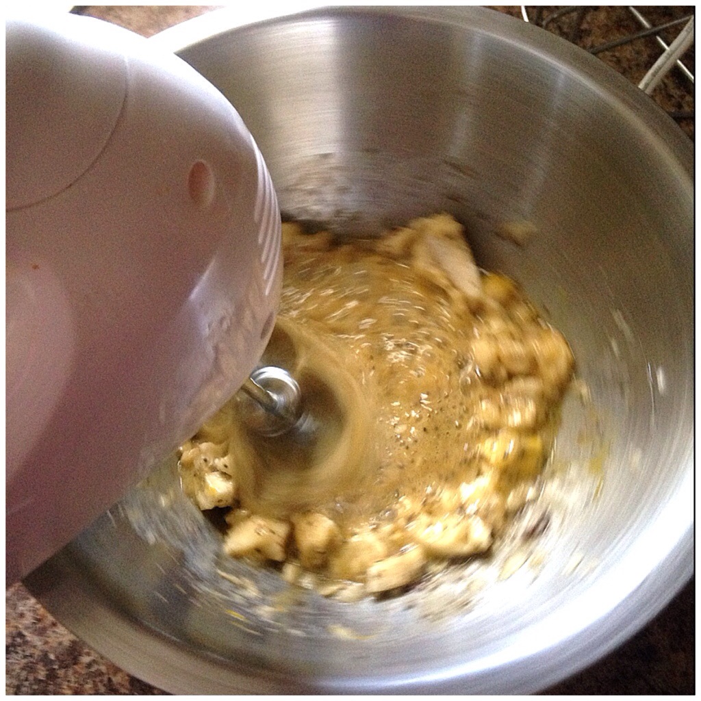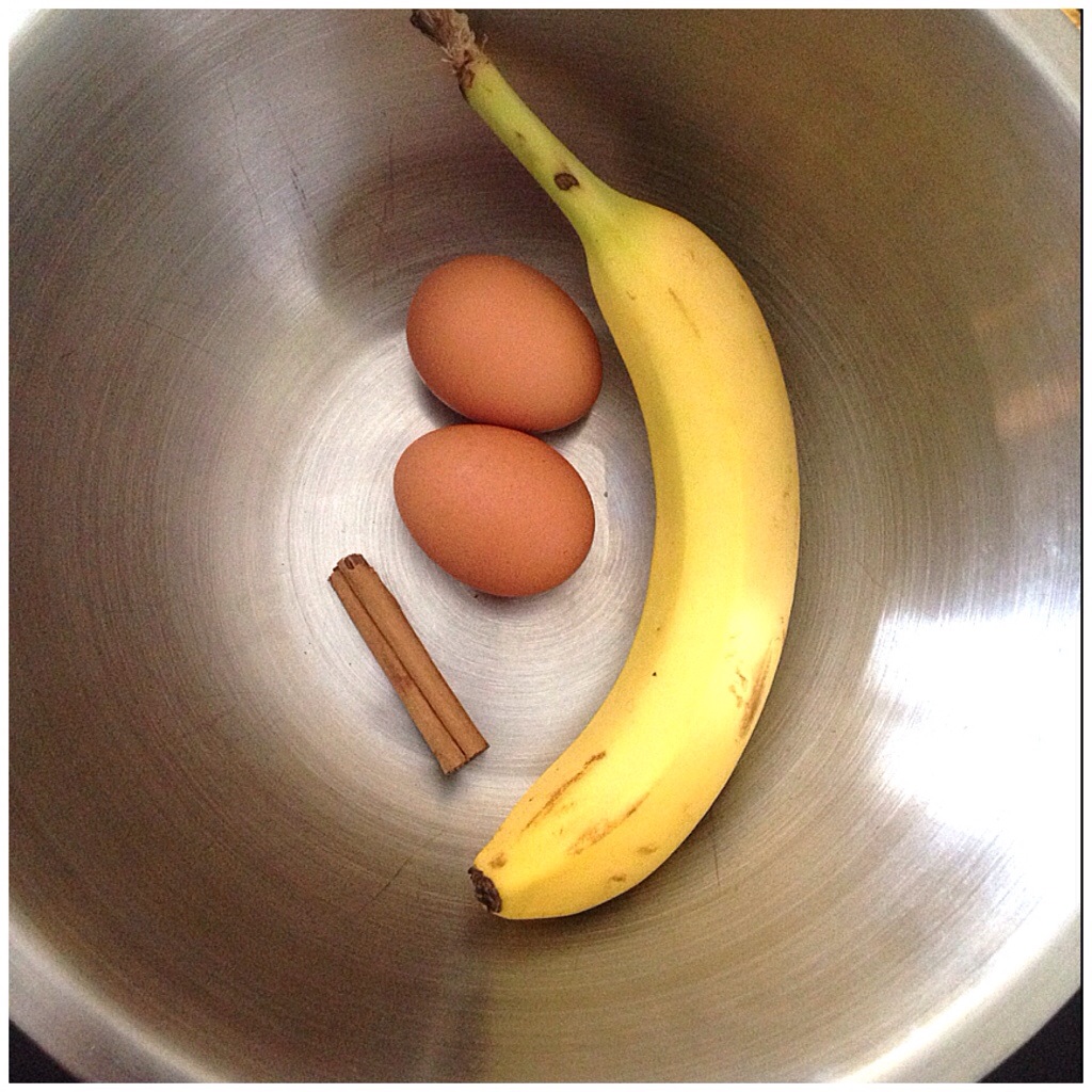 1. First gather your ingredients and put in a bowl. Eggs, banana, cinnamon, chia seeds.
