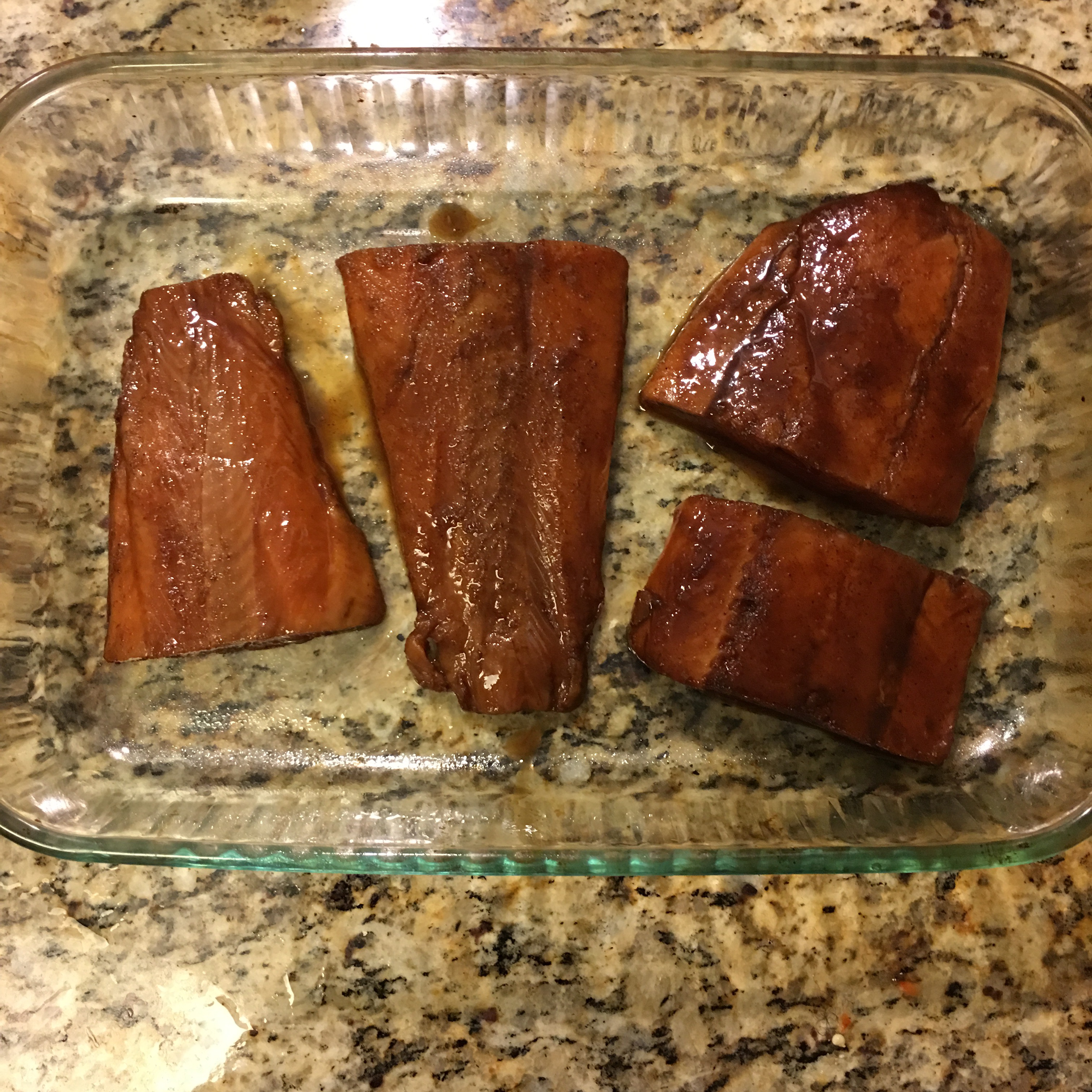 1. Place your salmon in a bag or container and allow to marinate in the Szechuan sauce and brown sugar for 2-3 hours prior to preparing dish.