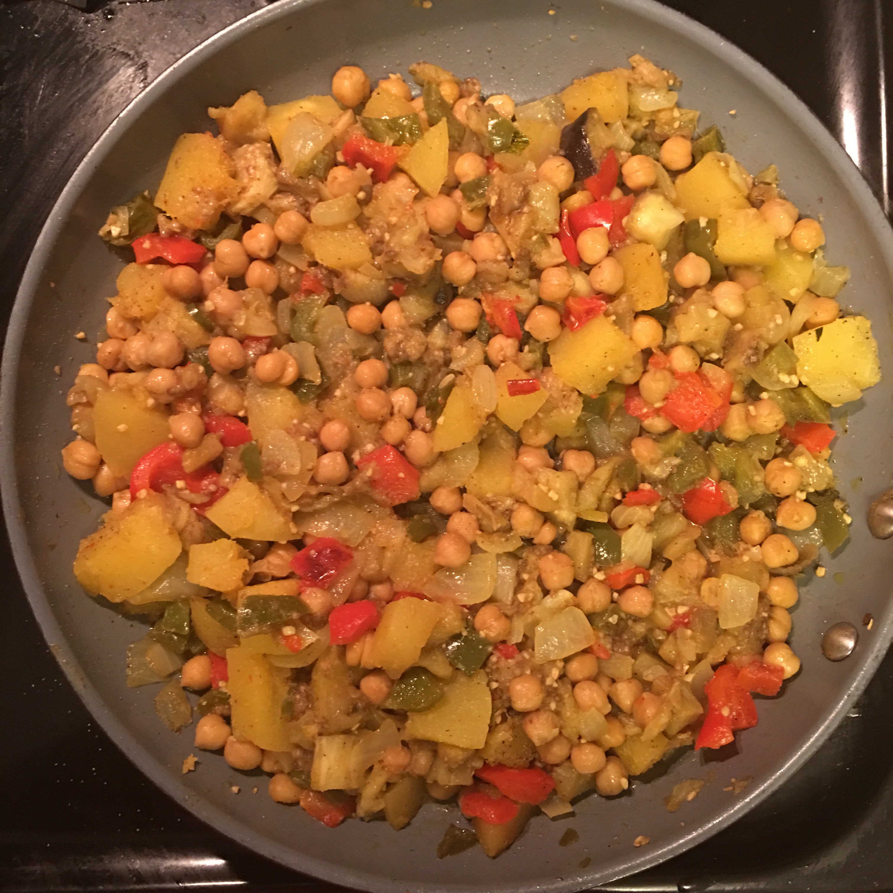 So what happens when you mix em all together and throw some curry in it?! Curried Eggplant, Squash, and Chickpea Mixer! You would have never guessed that right, lol.